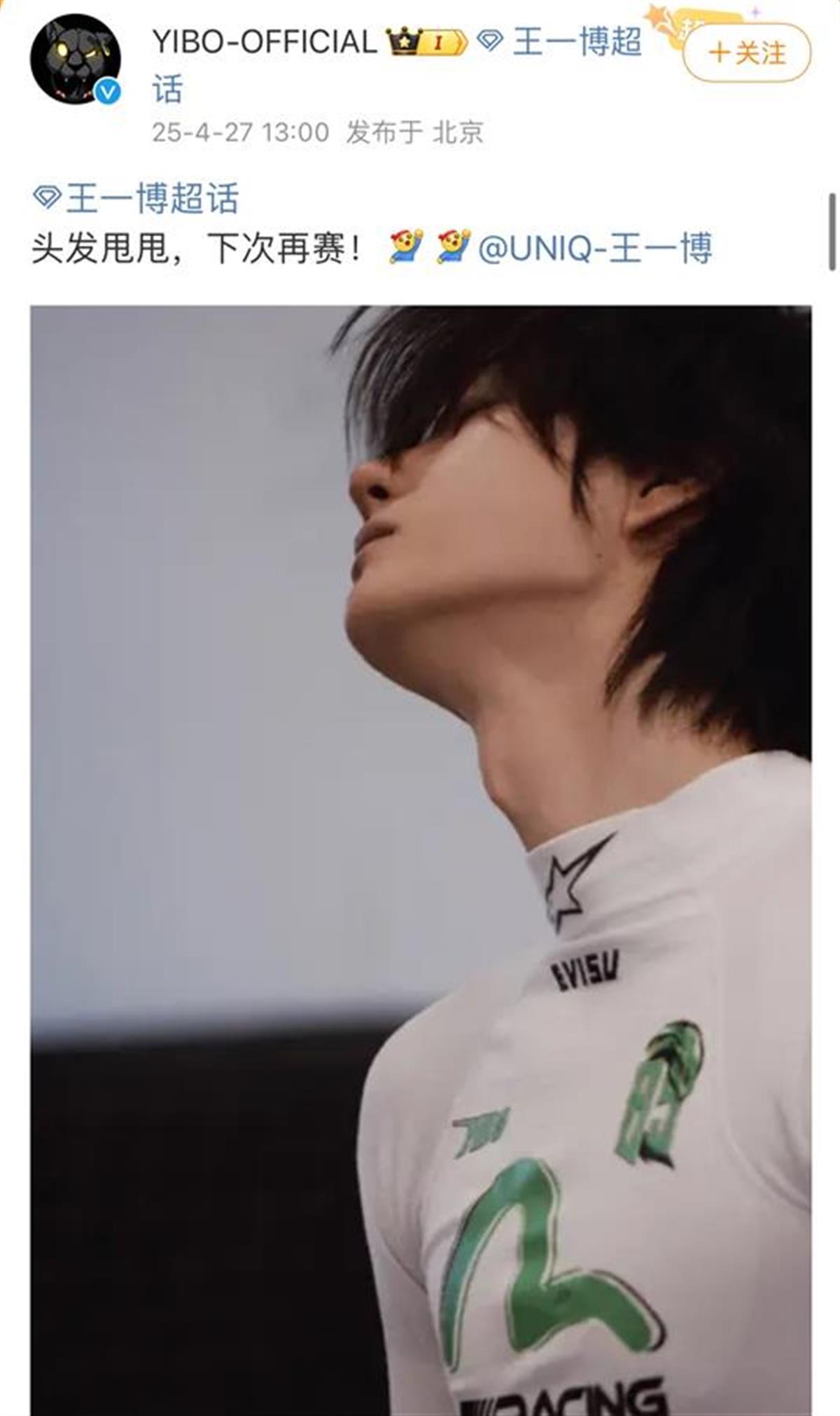 27日13:00,王一博工作室官方微博回应此次赛车无法正常进行事件,表示“头发甩甩,下次再赛”。