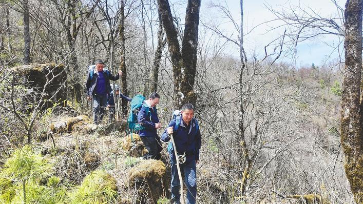 背好背包,列好队,听完领队陈忠国讲完纪律要求,大家一头扎进莽莽林海。“这是闹春花,开得最早。这是老乡菜,可以吃。”陈忠国手持长柄镰刀一边在前面开路,一边如数家珍地介绍路上的一花一草一木。