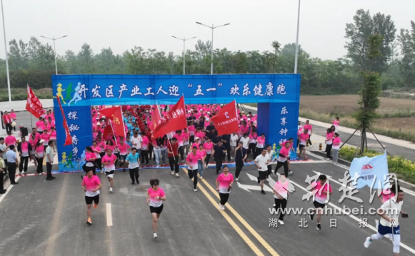 荆楚网(湖北日报网)讯(通讯员 何志琛、李璐)4月27日,由钟祥经济开发区、南湖新区共同举办的“探秘寿乡·乐享钟祥”——产业工人迎“五一”欢乐健康跑正式鸣枪开跑。800多名开发区和南湖新区干部职工、企业员工、社区居民集结开跑,以激情奔跑展现劳动者风采,用健康体魄凝聚奋进力量。