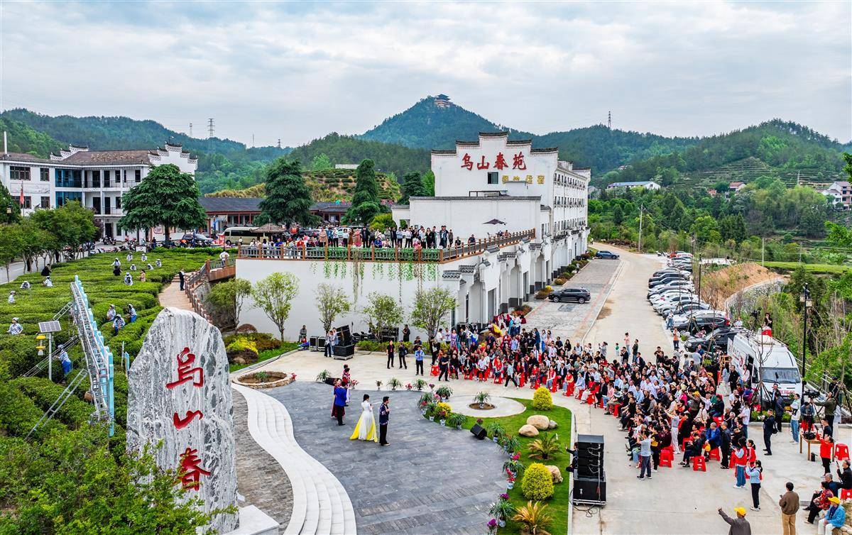 4月27日,英山县红山镇乌云山村万亩生态茶园。“村村有歌·唱响湖北”2025原创村歌展演暨品茶赏花季歌会开演。