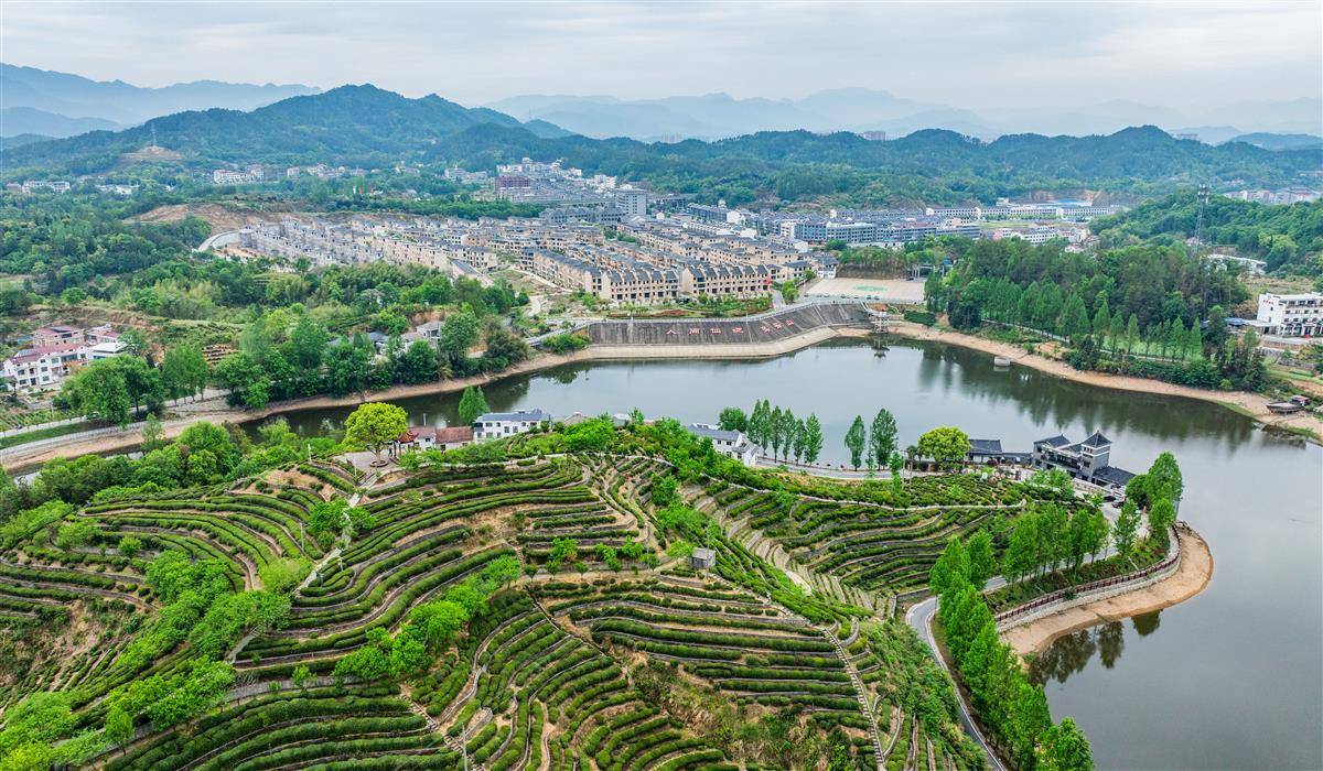4月27日,鸟瞰英山县红山镇乌云山村万亩生态茶园。