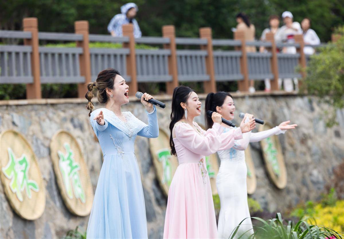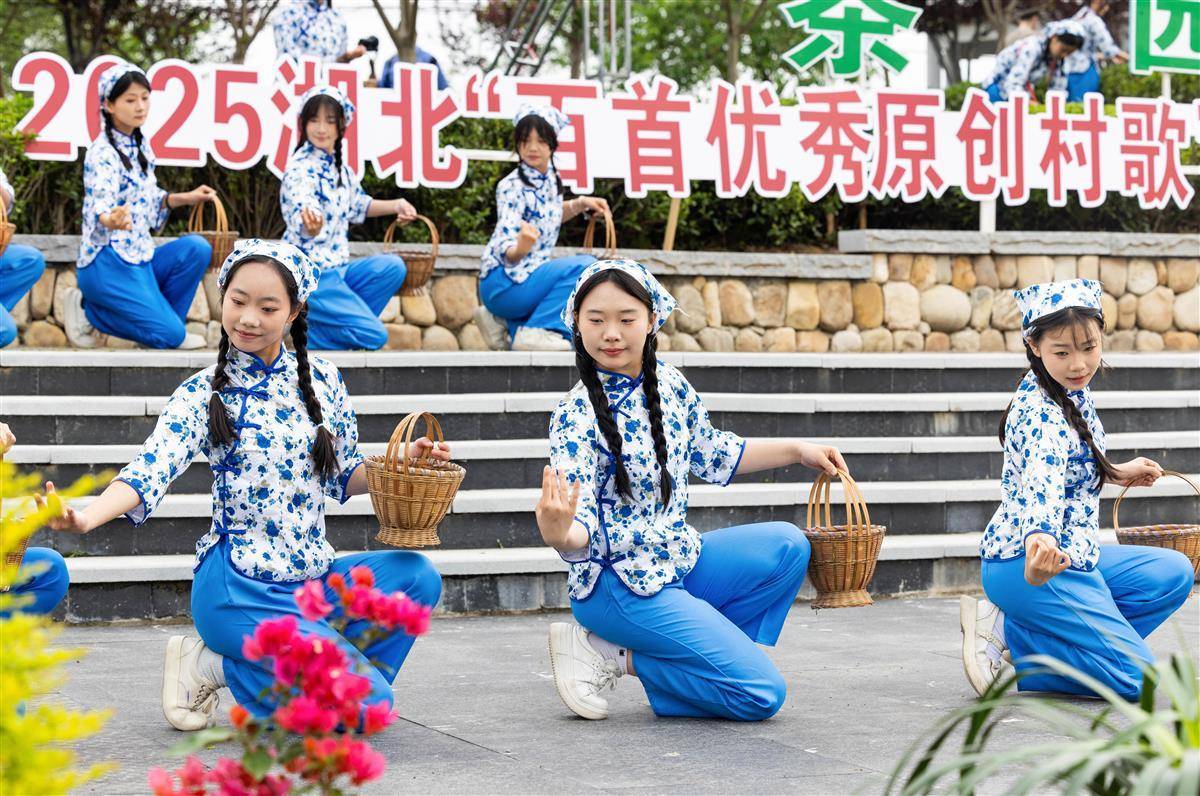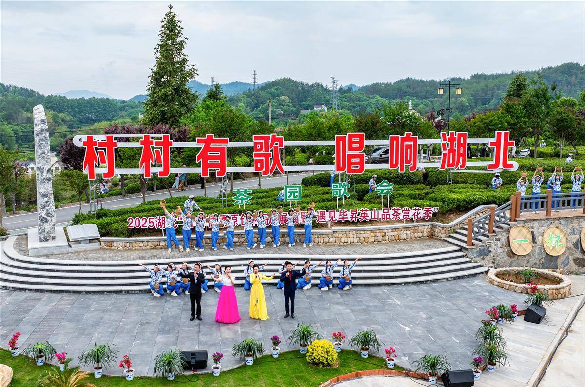 4月27日,英山县红山镇乌云山村万亩生态茶园, “村村有歌·唱响湖北”2025原创村歌展演暨品茶赏花季歌会开演。