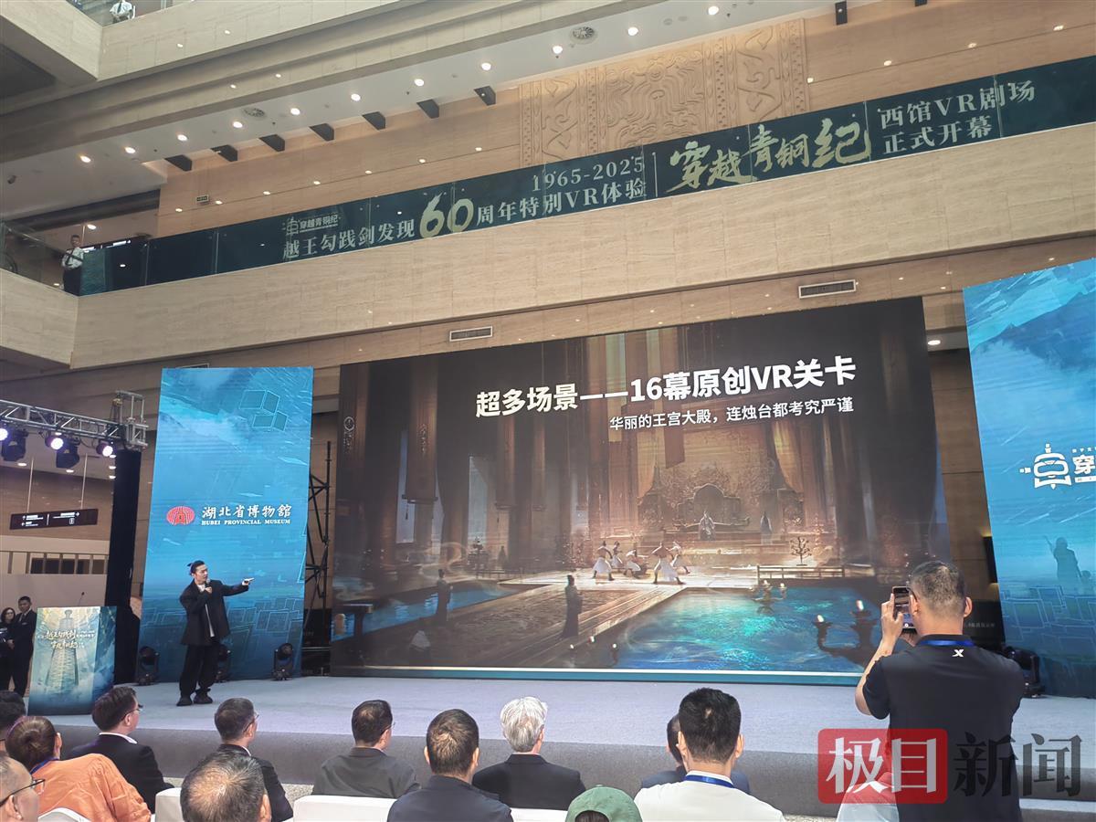 60年前,越王勾践剑于湖北江陵望山1号墓出土;60年后,2025年4月29日,为纪念越王勾践剑发现60年,湖北省博物馆迎来了一场跨越2000多年的时空对话——全国首个电影级数字文物VR体验项目《穿越青铜纪》正式向公众开放。著名考古学家、越王勾践剑的主要发掘者陈振裕也来到现场,观看这场文物与科技的结晶。