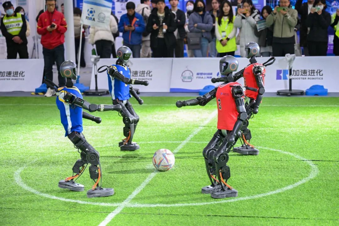 机器人在2025全球开发者先锋大会现场踢足球。新华社发(陈浩明 摄)