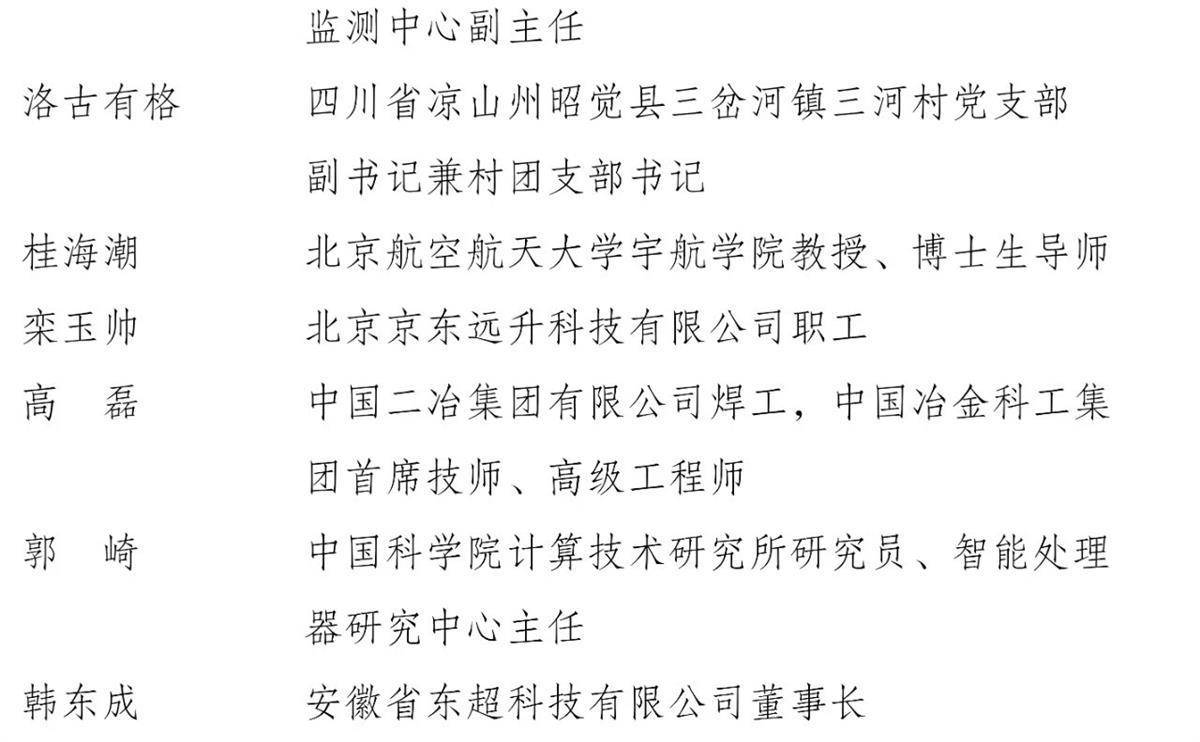 2025年度中国青年五四奖章获奖者名单(共30名)