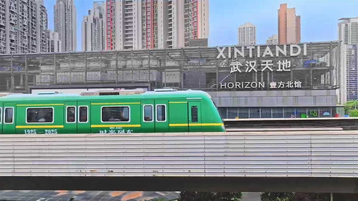 2025年,中华全国总工会迎来百年华诞。武汉作为代表城市,浓缩着工人运动的壮阔历史,地铁1号线列车刷成绿皮车厢致敬。“时光列车”车厢内的老照片与红色足迹地图向乘客娓娓讲述工运时光。武汉是中华全国总工会旧址,是中国工运史及中国革命史的重要载体和见证。