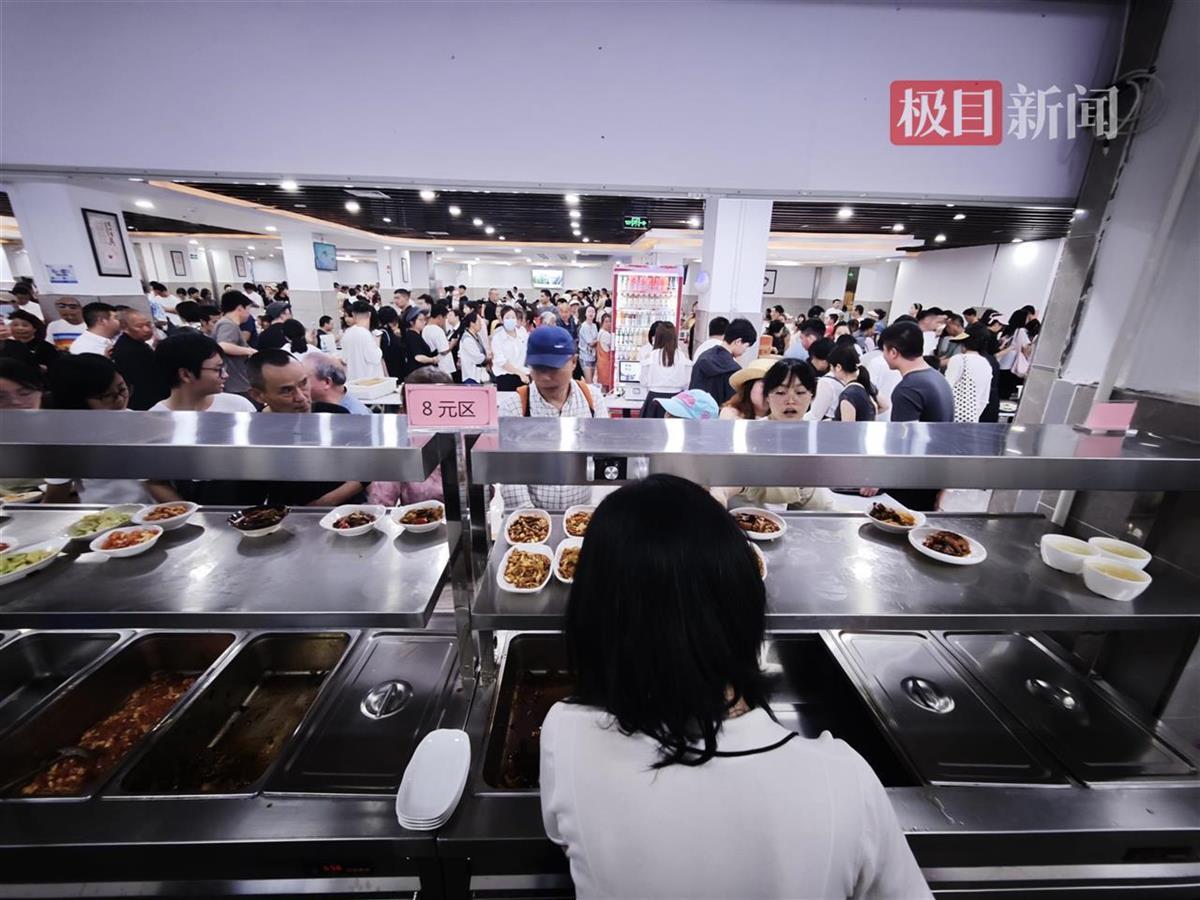 记者注意到,该食堂生意异常火爆。因为游客实在太多,年轻的机关食堂管理人员王婷婷也一起上阵,为游客打饭打菜,“人太多了”。