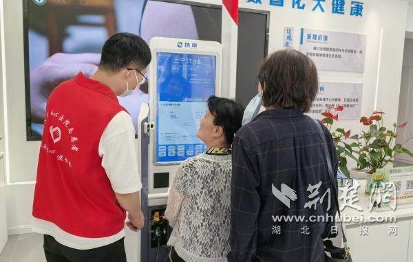 当天上午,在武汉市中心医院南京路院区健康管理中心新开设的旅游健康驿站,不少市民及来汉游客体验健康管理服务。