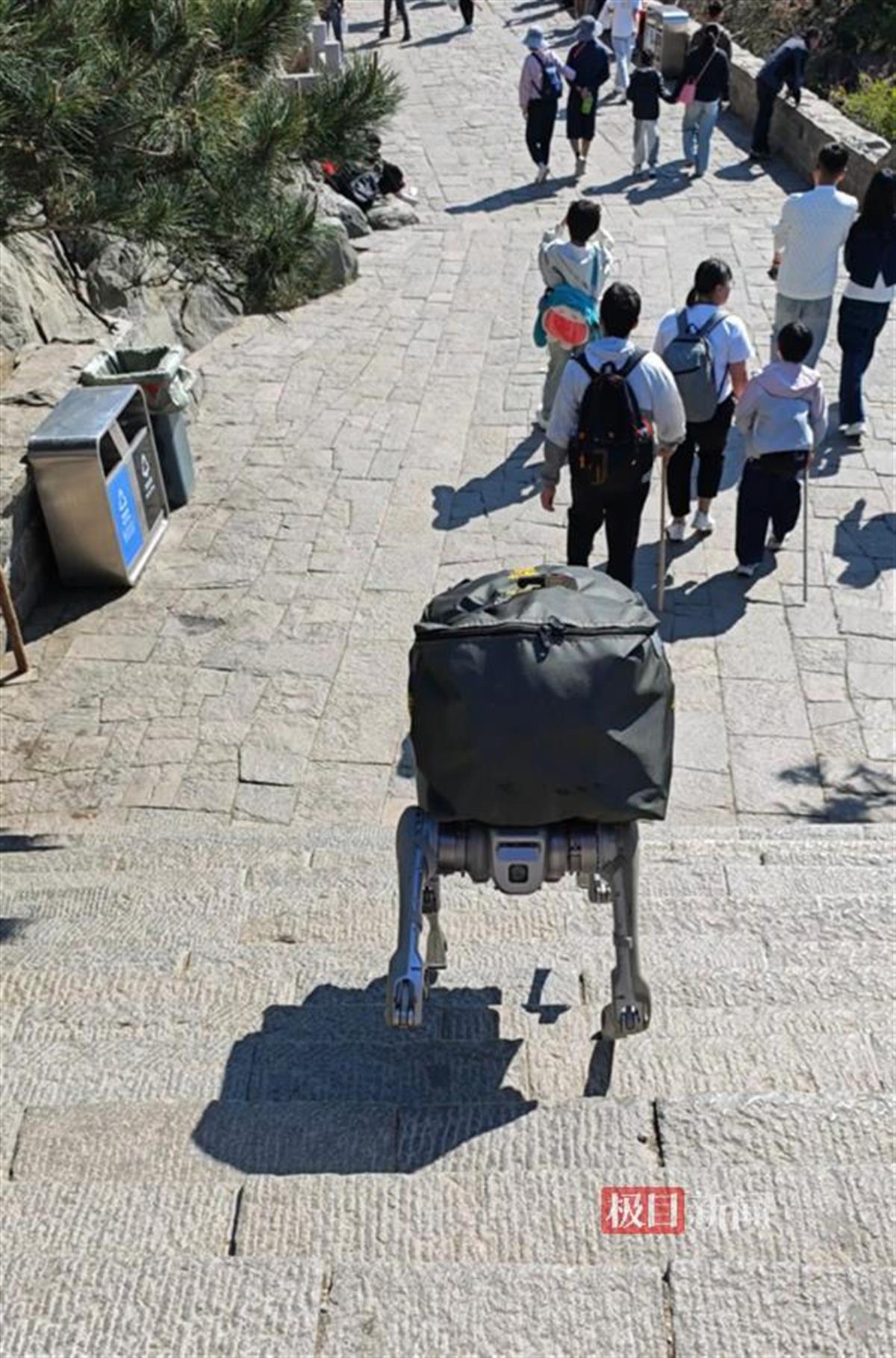 五一假期首日,山东泰山景区人流如织。当天,极目新闻记者在泰山天街看到,一只“机器狗”正驮着物资,迈着矫健的步伐向目标方向前进,其间上下台阶如履平地,遇见行人还能及时规避,引得在场游客纷纷驻足围观称赞。
