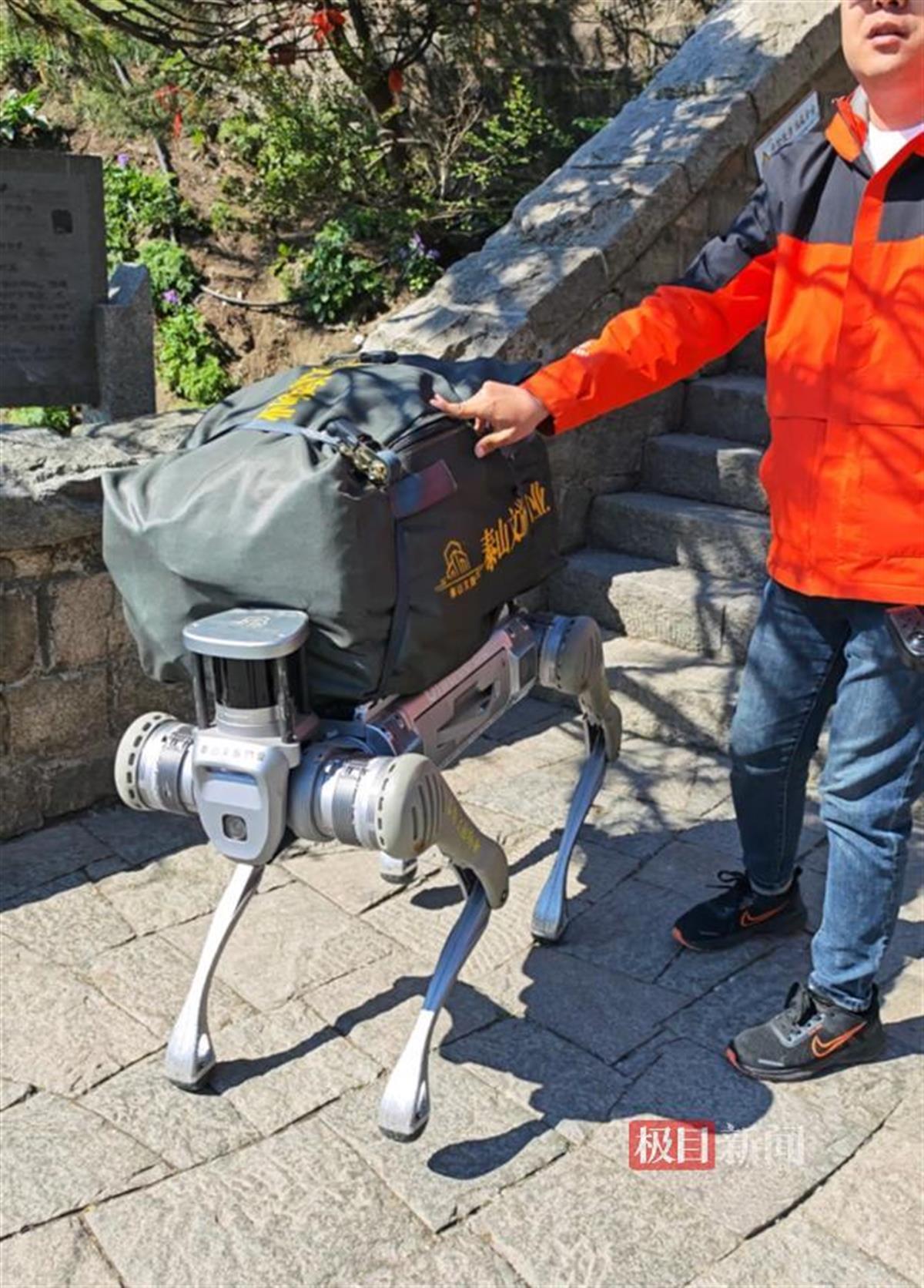 根据测试,这只机器狗负重从泰山山脚下的红门出发,到达山顶最多只需两个小时,而登山游客一般需要四到六个小时。