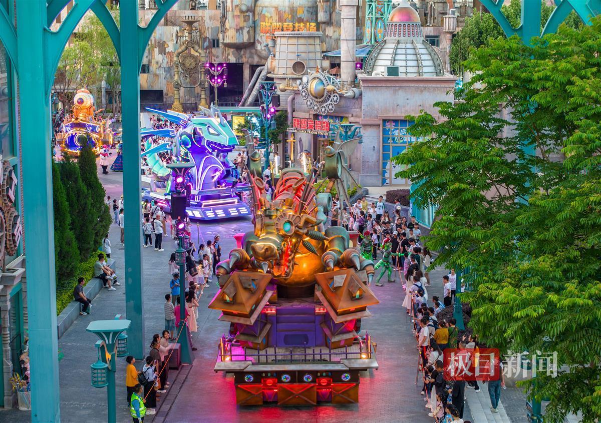 同时,游客还可以乘坐“达芬奇飞翔”宽翼过山车,全程超一千米,感受冲上太空般的刺激;挑战“方舟大冒险”激流勇进,从10层楼高飞驰而下,激起漫天水花;打卡“星际历险”7D飞行影院,8K高清LED环球屏幕,体验“漫游火星、穿越金星”的宇宙时空之旅;欣赏“地宫历险”行进式互动演艺秀、奇幻之旅夜光大巡游等精彩演艺。