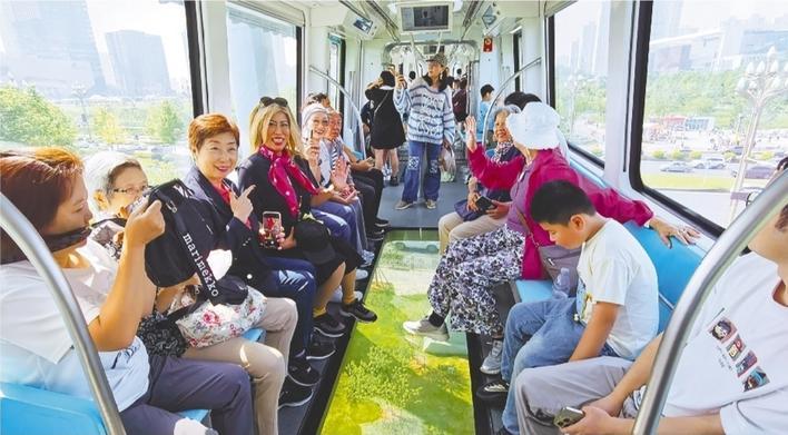 “五一”假期,泰国游客在体验武汉的空轨。 (受访者供图)
