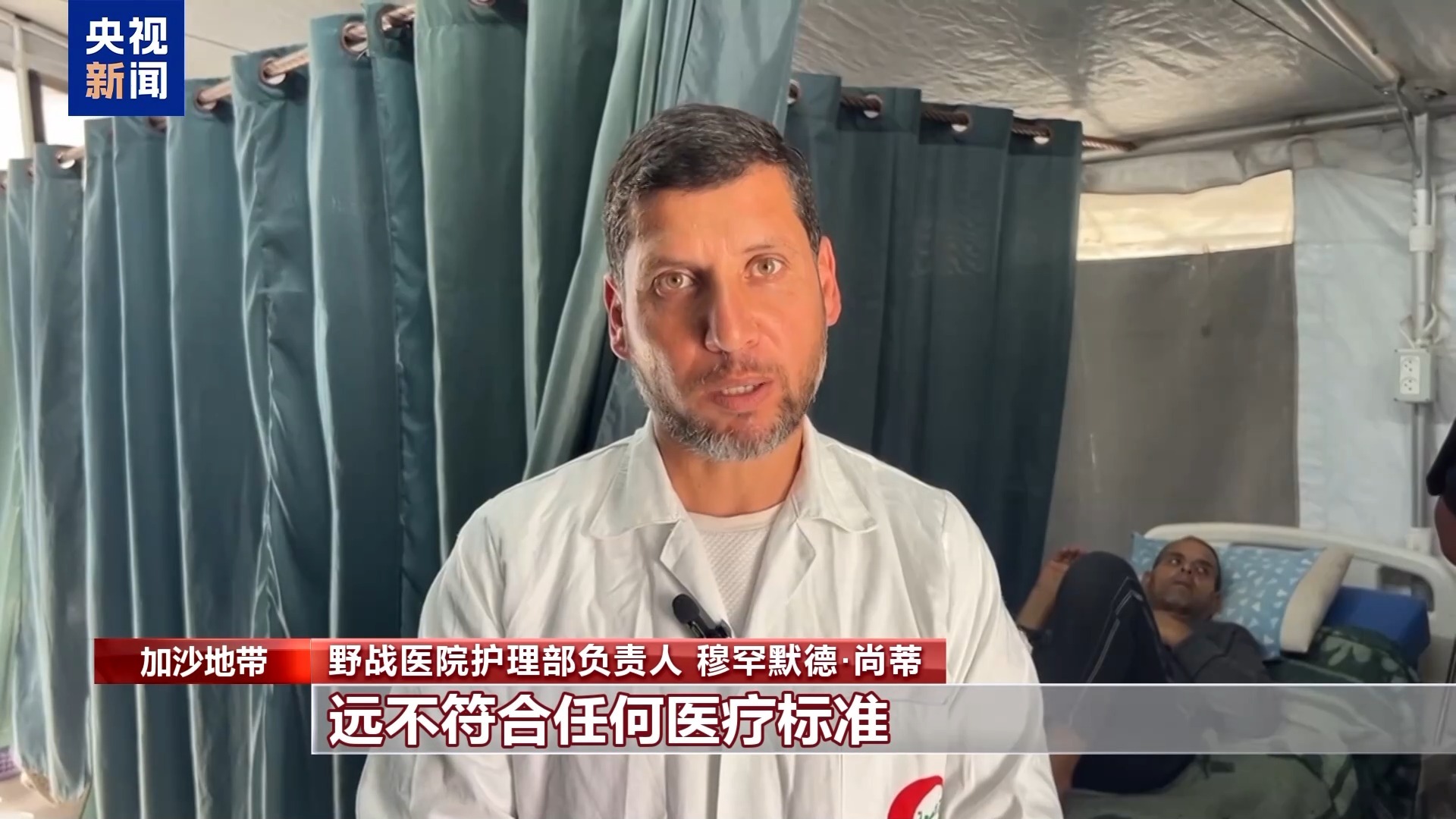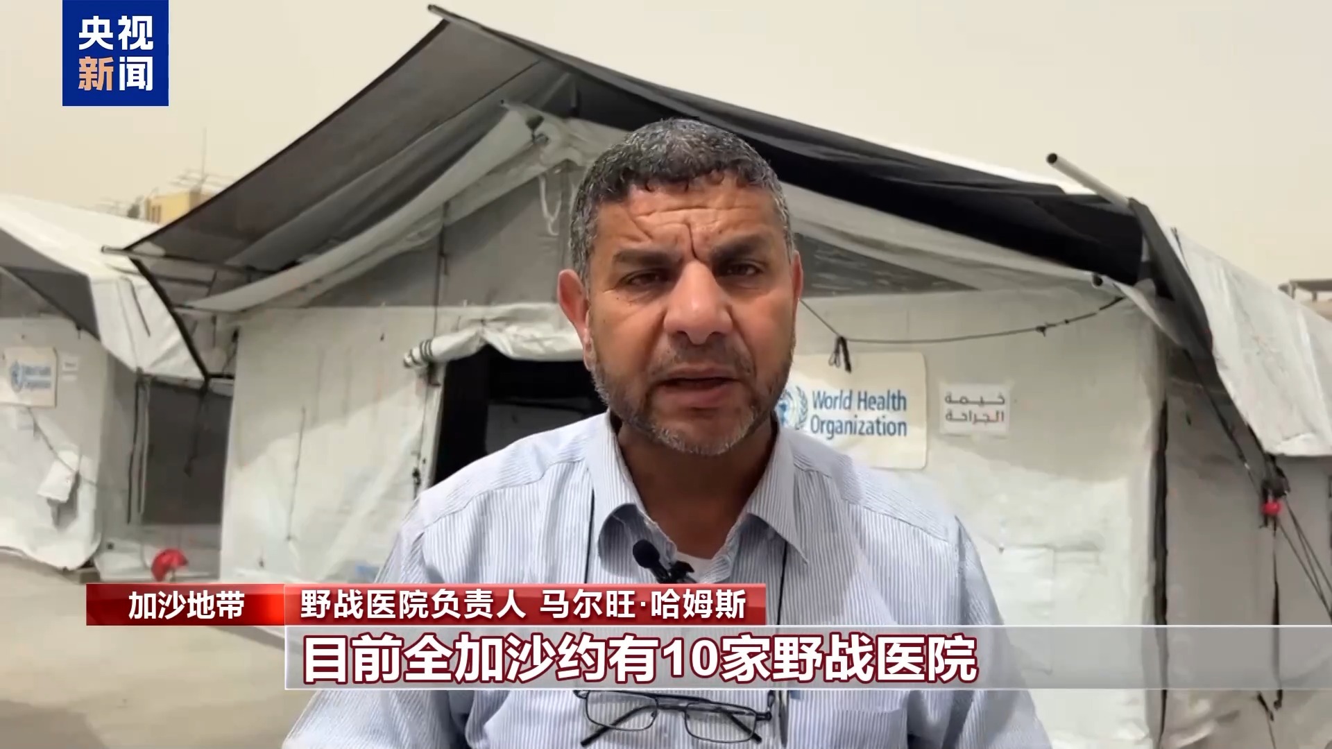总台报道员 穆罕默德·沙尔:这里是阿布·优素福·纳贾尔野战医院,它是为流离失所者提供医疗服务的野战医院之一。在加沙地带的医疗系统几乎瘫痪的艰难环境下,许多野战医院应运而生,尽管资源有限,医疗物资匮乏,但这些医院仍承担起重要的救治责任。