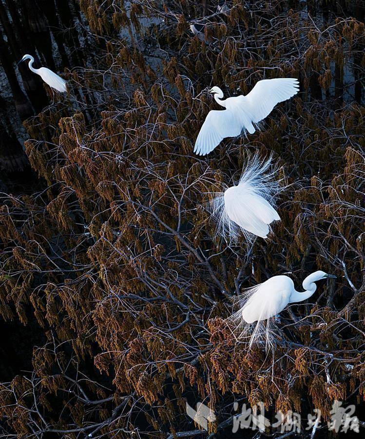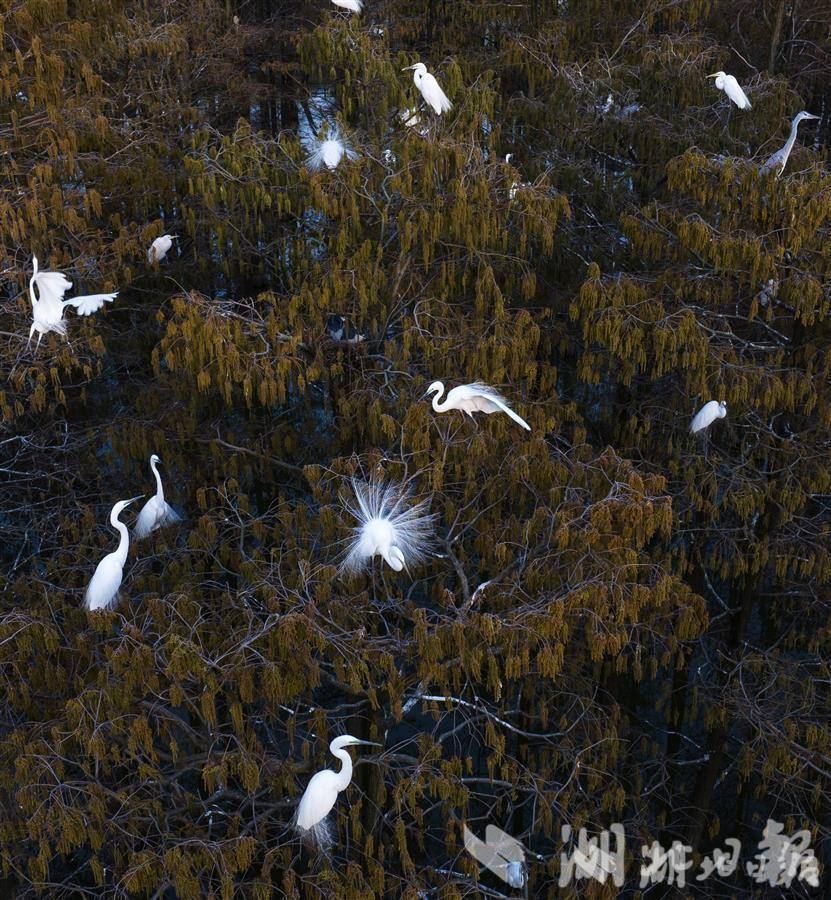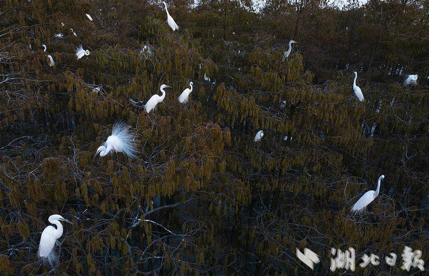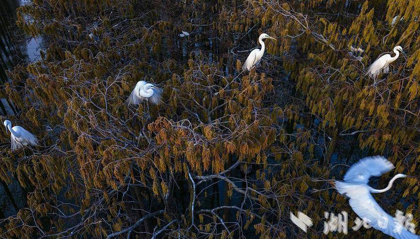 每年春夏季,位于武汉新洲区涨渡湖湿地,白鹭们迎来了换新装的季节。