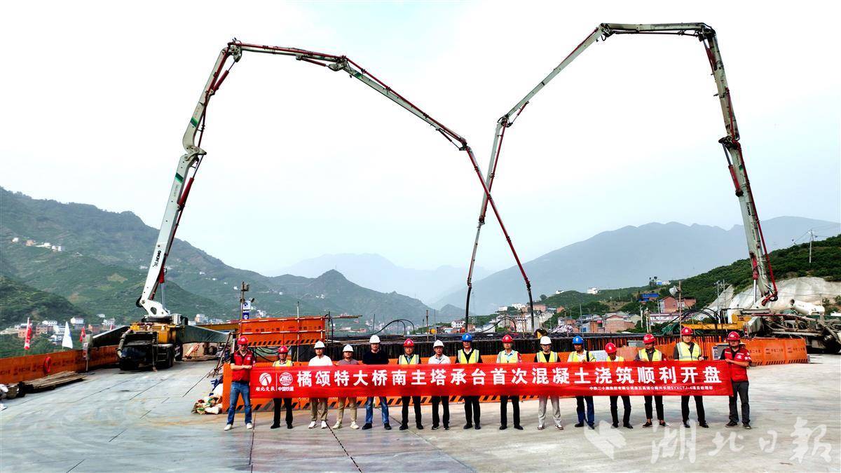 5月7日,在秭归县的房县至五峰高速公路建设现场,机械轰鸣声、罐车下料声不断。历时20小时连续浇筑,由湖北交投集团投资、中铁二十局承建的橘颂特大桥首个承台完成,即将进入主塔塔柱施工阶段。该桥为主跨近400米的混合组合梁斜拉桥,最大墩高达232.5米。全长256公里的房武高速公路,串起世界级旅游走廊——鄂湘“两江三山”,堪称一条观光之旅的美丽路、自然和谐发展的生态路。高速公路建设是湖北交通投资主战场,一季度完成投资274.6亿元,增长20%。