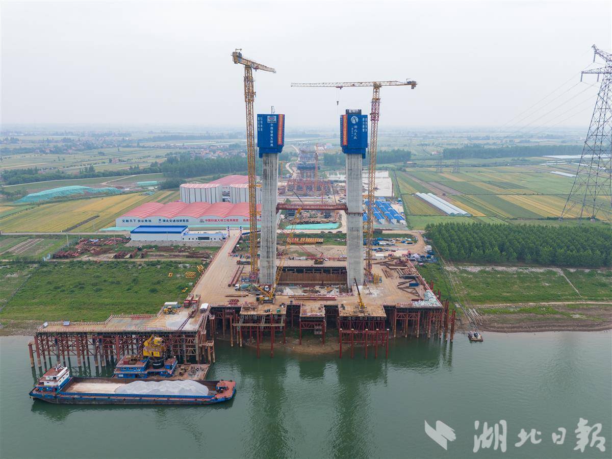 李埠长江公铁大桥主塔突破百米。(通讯员 范鹏 摄)