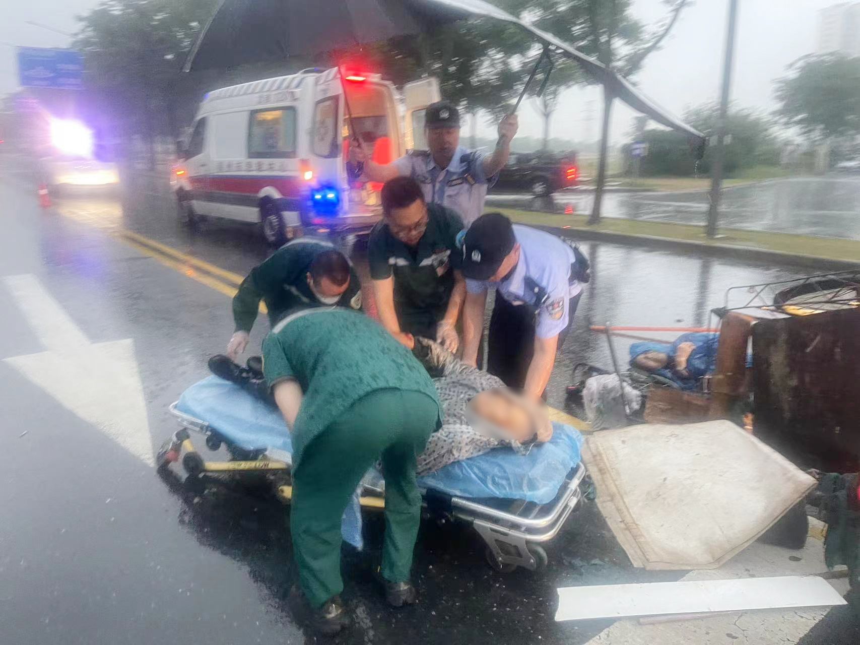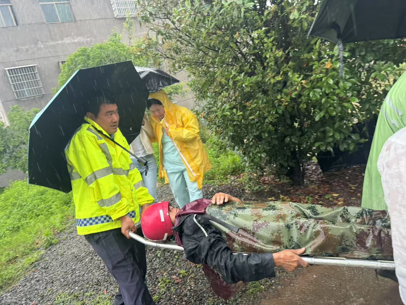 因强降雨导致视线不佳,一辆小汽车与两辆三轮车在荆州市纪南文旅区凤凰牧场门口相撞,纪南文旅区分局郢都派出所民警接警后迅速赶到现场,在风雨中守护受伤的老人直至救护车赶到。降雨后路面湿滑,通城县大坪乡一名老人不慎摔倒无法起身,县公安局大坪派出所民警冒着倾盆大雨,第一时间用担架将老人送到医院救治。为防范暴雨引发山体滑坡,鹤峰县公安局中营派出所联合王家村村委会于凌晨紧急开展疏散行动,将25名群众转移至安全地带。