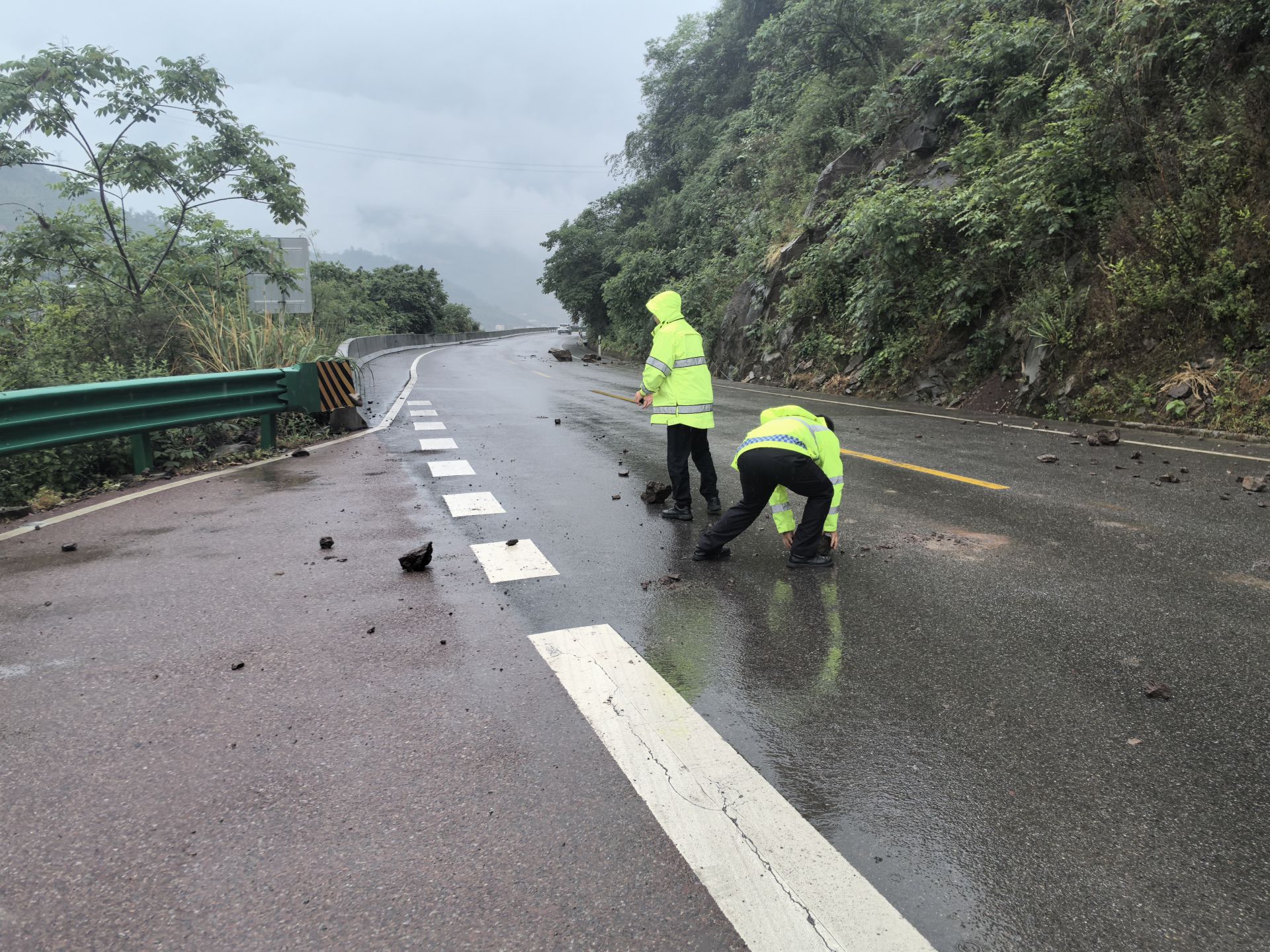 持续强降雨导致兴山县部分地区发生崩塌、滑坡、泥石流风险上升,县公安局交警大队全员上路,携带铁铲、电锯等工具,沿山区道路开展拉网式排查,实时清理路面落石和倒伏的树木。