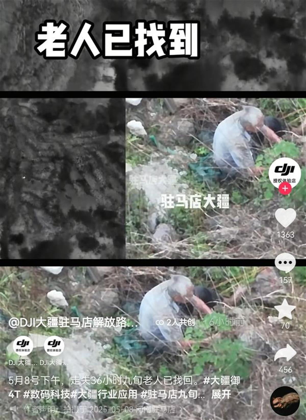 河南驻马店一位90岁高龄的老人走失2天2夜后,于昨日傍晚天黑之前,在离家七八公里外的一个废弃千亩钢场,救援人员用无人机热成像在天黑之前成功搜寻到。