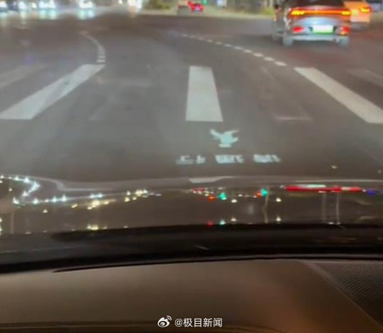 5月8日,有网友发布视频称,夜间过马路时遇到一辆机动车礼让,该车辆在斑马线上投射出“请通行”字样,还配有示意通过的移动人形图案。极目新闻记者注意到,这条视频得到了数万网友的点赞。