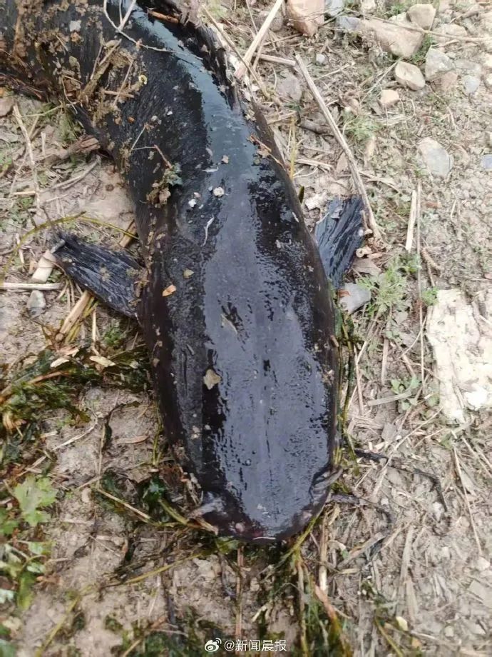 5月6日下午,市民王先生在大连西山水库发现一群体型较大、通体黝黑的无鳞怪鱼。