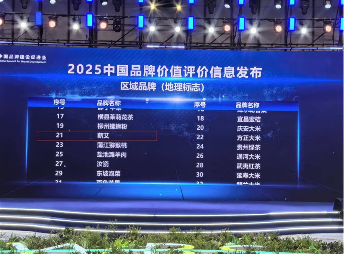 湖北日报讯(记者柯利华、通讯员吕雷、范文强)5月10日下午,中国品牌建设促进会发布“2025中国品牌价值评价信息”,蕲艾作为地理标志区域品牌,以品牌价值142.58亿元,位列全国榜单第21位,比上年提升3位,排名连续10年上升。
