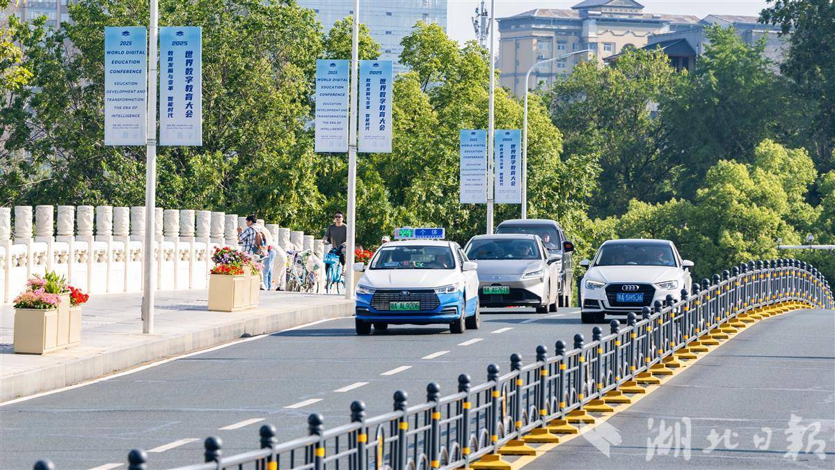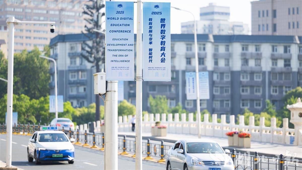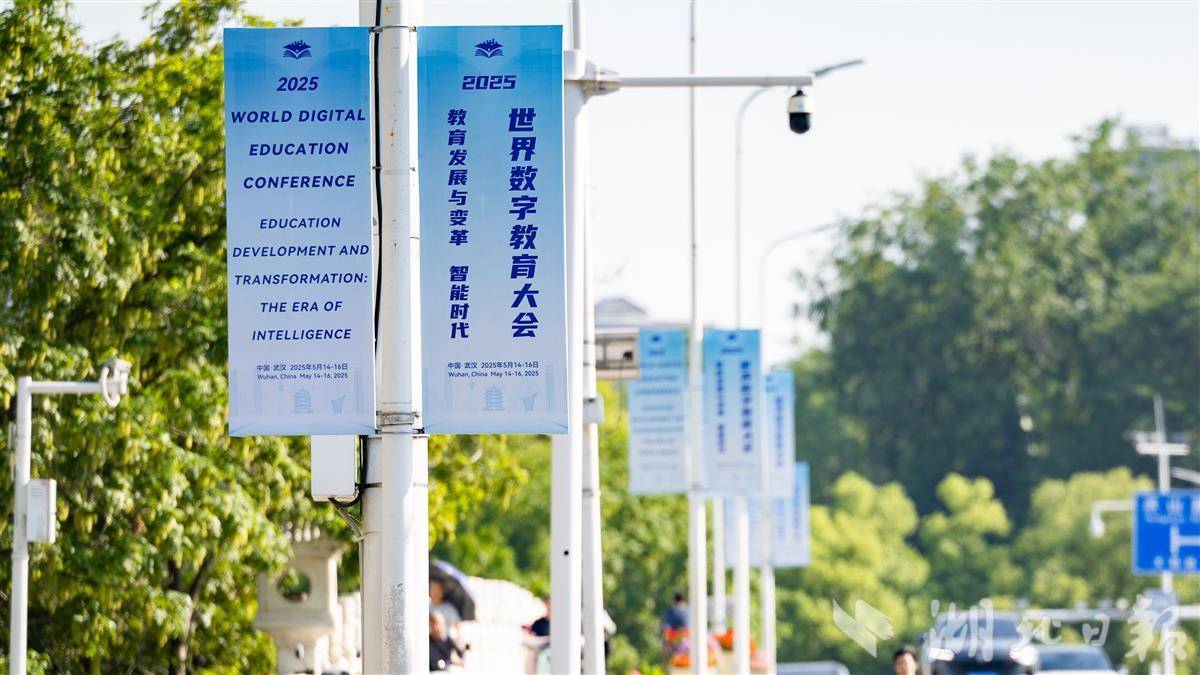5月11日,2025世界数字教育大会在武汉召开前夕,以“教育发展与变革”“数字时代”为主题的世界数字教育大会宣传海报已经挂满武汉街头,格外醒目。(湖北日报全媒记者 何宇欣 实习生 李昕蓉 摄)
