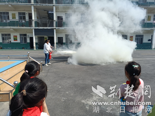 代表参与实操。“原来灭火器要对准火焰根部喷射!”五年级学生小明在体验后兴奋地分享收获。