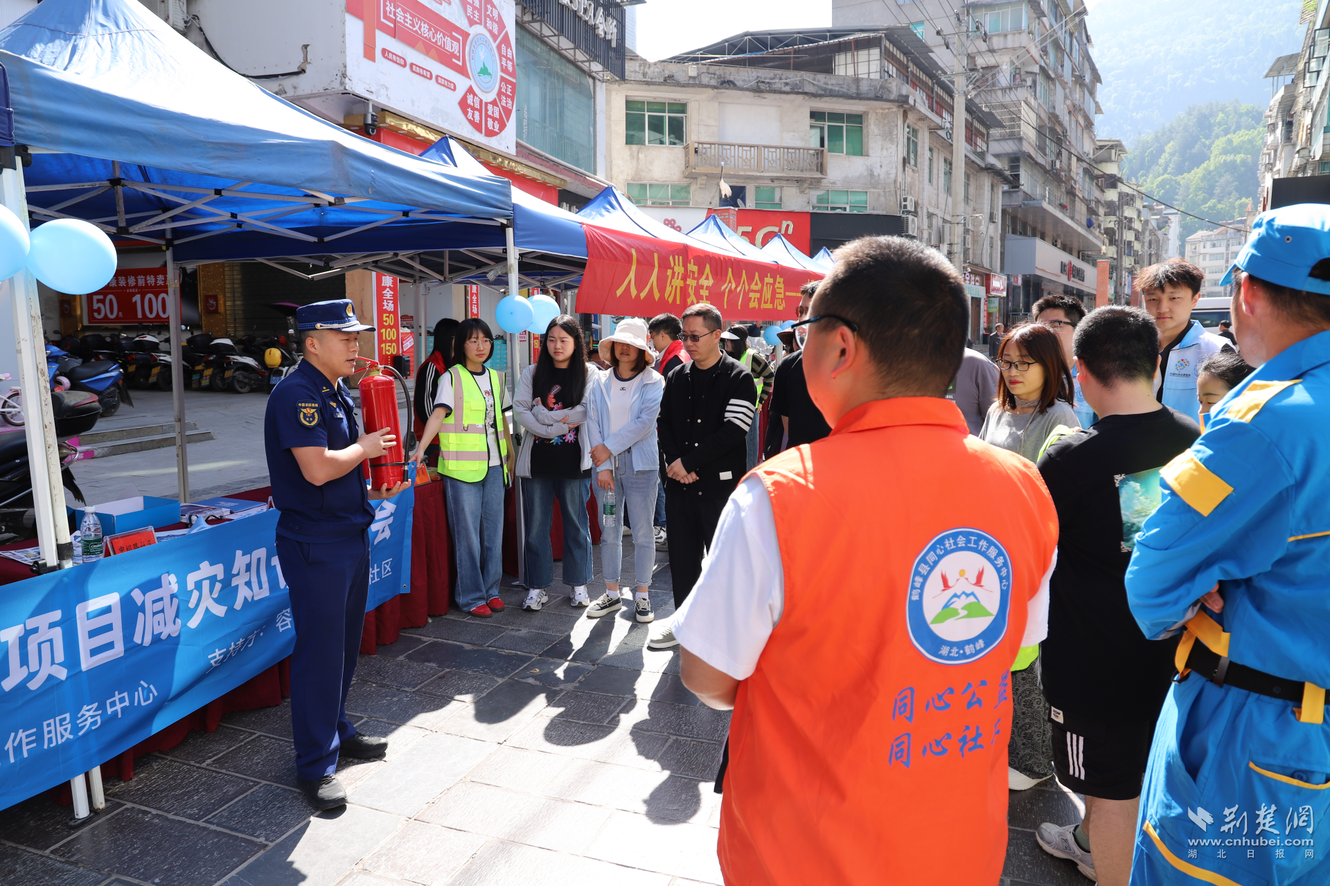 鹤峰县消防救援人员在容美镇步行街开展“5.12”防灾减灾消防宣传活动。杨云涛 摄