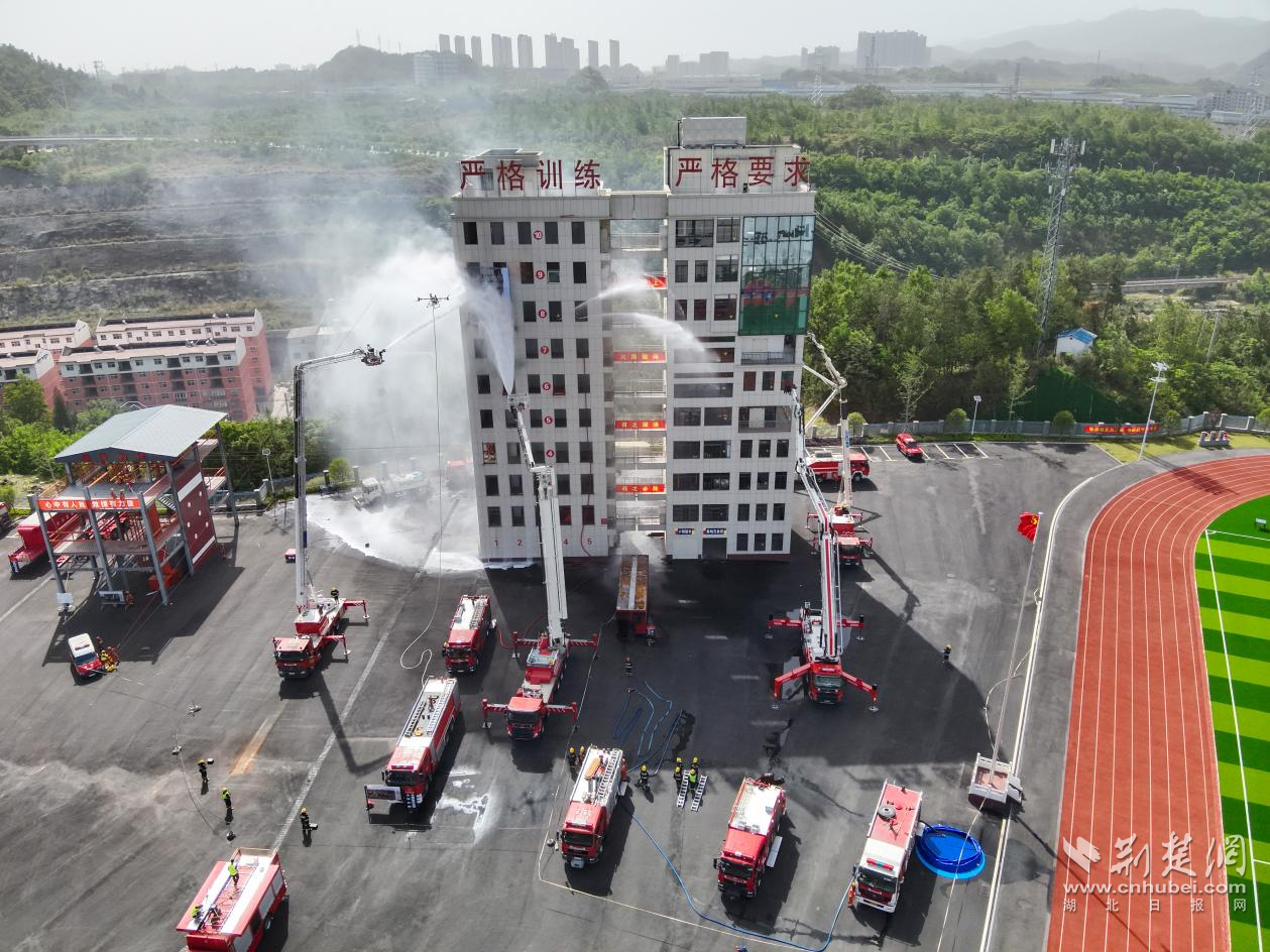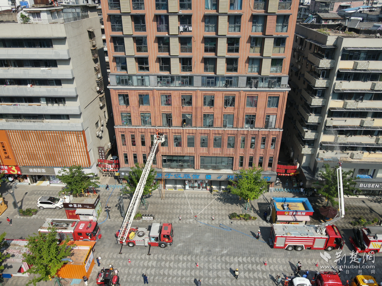 黄石市消防救援队伍开展大型消防应急疏散演练。张佳玮 摄
