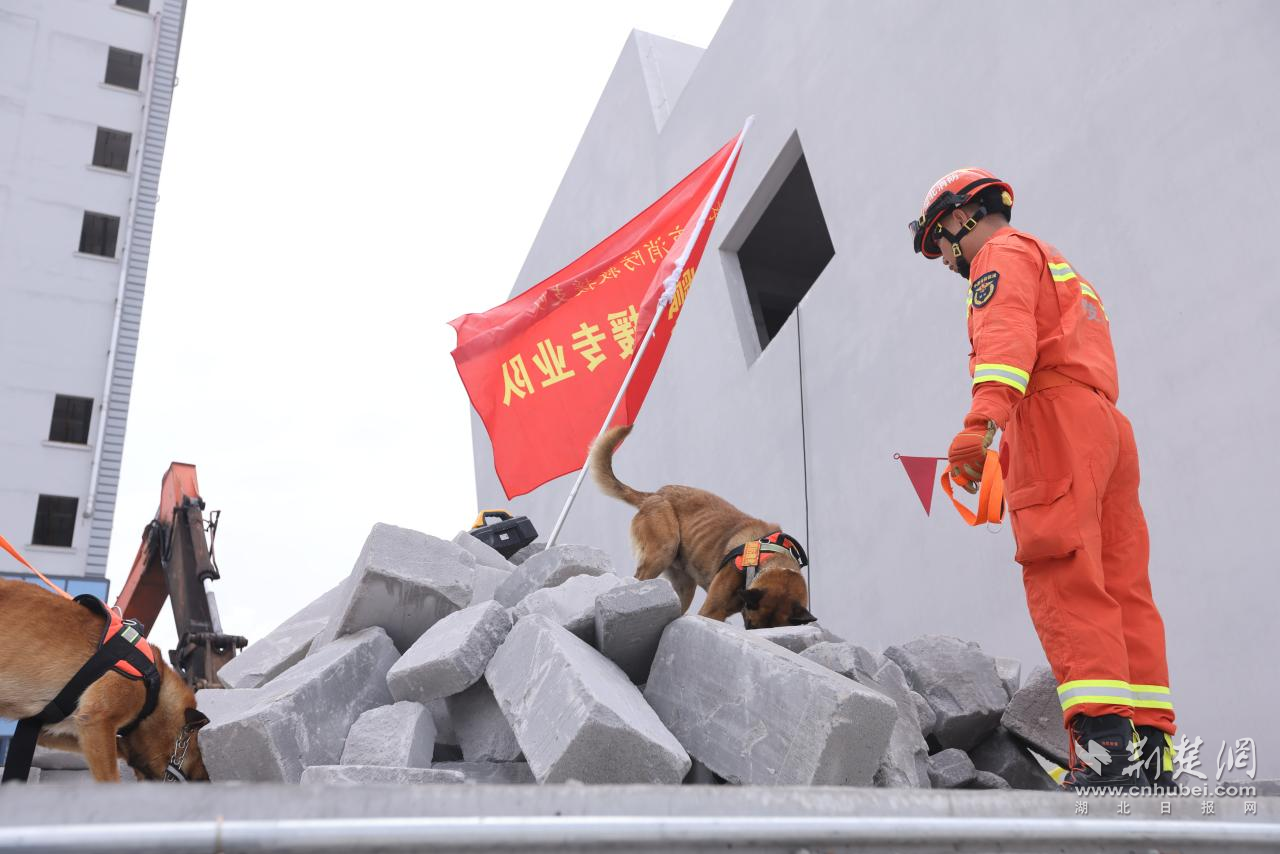 孝感支队在训练基地地震救援综合训练场组织开展地震救援实战拉动演练。付传虎 摄