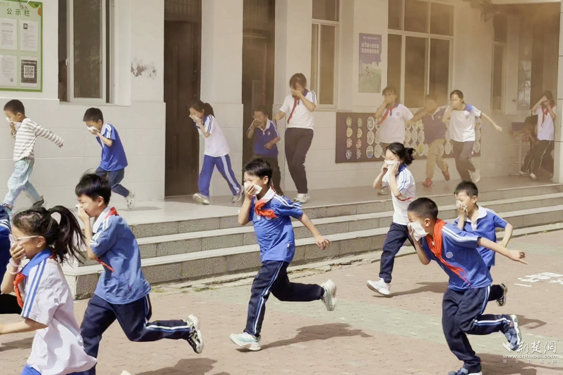 潜江市曹禺小学东校区300名师生在消防员引导下,5分钟有序撤离至安全区,云梯车高空救援演示将活动推向高潮,六年级学生蒋宇轩感叹:“坐上云梯车后,逃生知识更深刻了!”