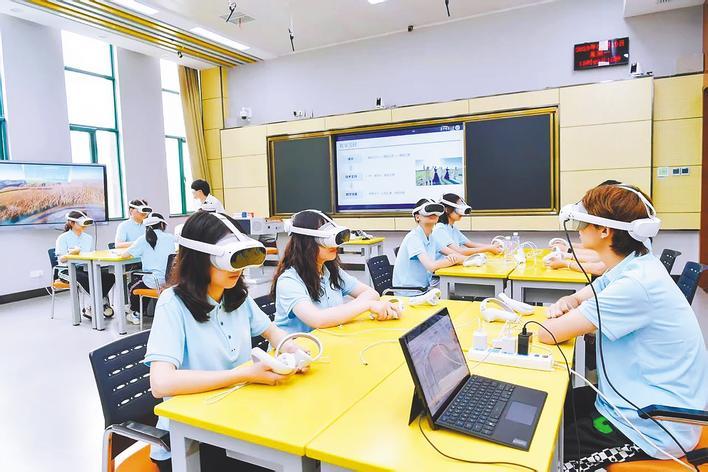 华中师范大学学生在上思政元宇宙课。(省教育厅供图)