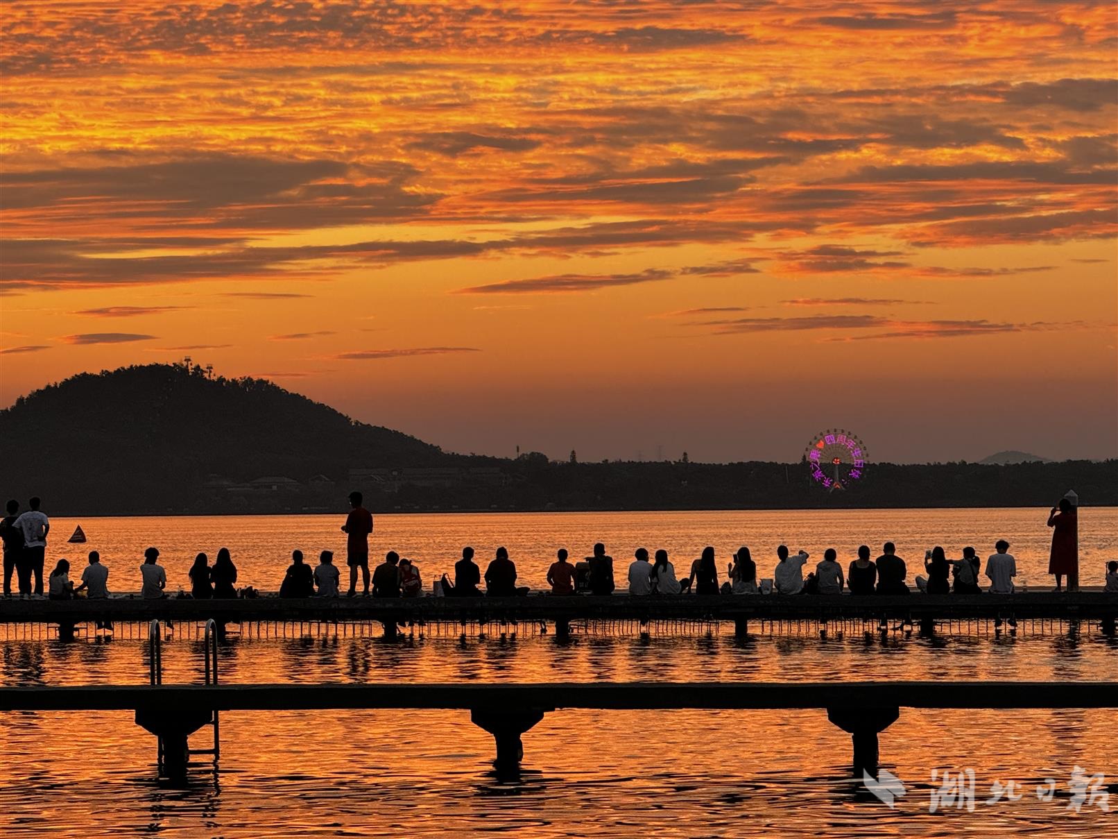 东湖边追霞光的人。清风摄
