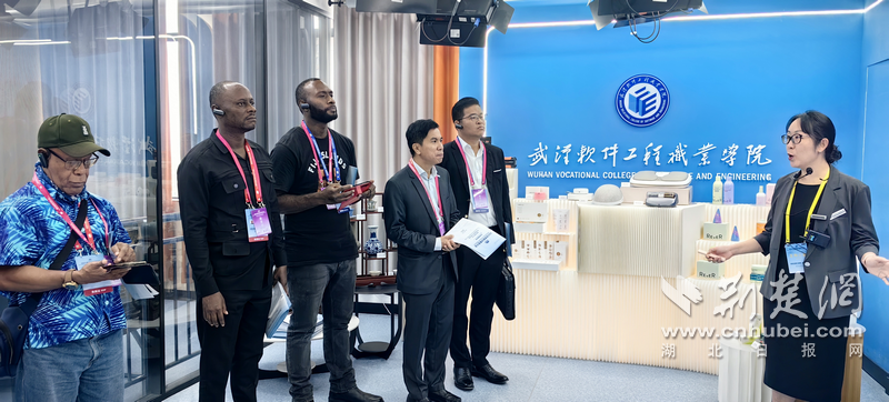在武汉软件工程职业学院创新创业大楼12楼的社交电商特色产业学院,一堂“AI+跨境电商运营”的课程正以现场直播的形式展开。该课程在南非公派留学生技能培训项目中开展,培养具备AI工具创新应用能力、AI驱动数据决策能力、人机协同流程规划能力和跨文化交流与学习能力的数字商业人才,同时展示AI技能评价、数字人直播间搭建、数字教师教学等新兴教学场景。