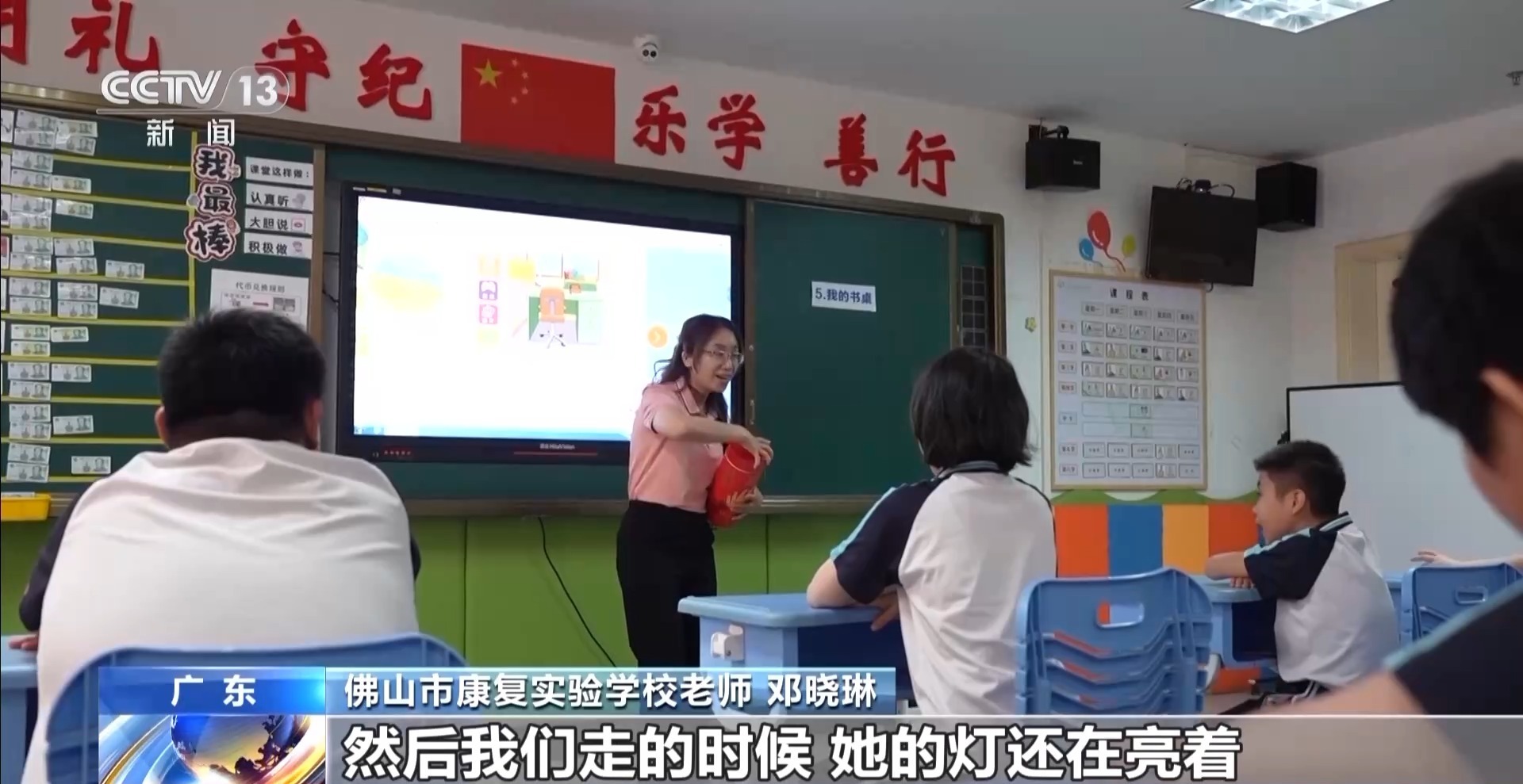 佛山市康复实验学校老师 邓晓琳:我们来学校的时候,她就已经在工作岗位上面了,我们走的时候,她的灯还在亮着。总觉得她有很多的精力,干劲满满的那种状态。