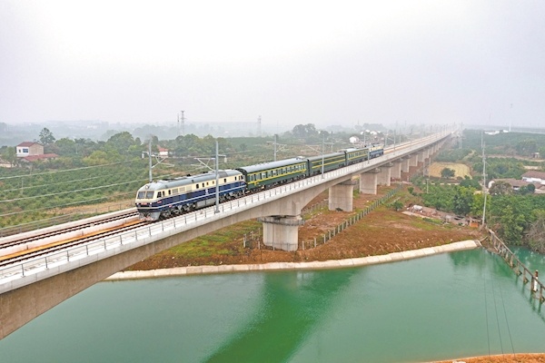 5月15日,沪渝蓉高铁武汉至宜昌段启动联调联试。沪渝蓉高铁武宜段位于湖北省境内,起自武汉市,经天门市、荆门市,终至宜昌市,正线全长313公里,设计时速350公里。沪渝蓉高铁武宜段有望年内通车,届时武汉至宜昌的旅行时间,将从目前的2小时缩短至1小时左右。图为检测列车正进行综合测试(无人机照片)。图据新华社
