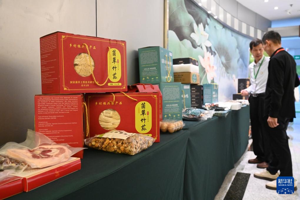 第二十届国际菌草产业发展研讨会现场展示的菌草产品(5月16日摄)。