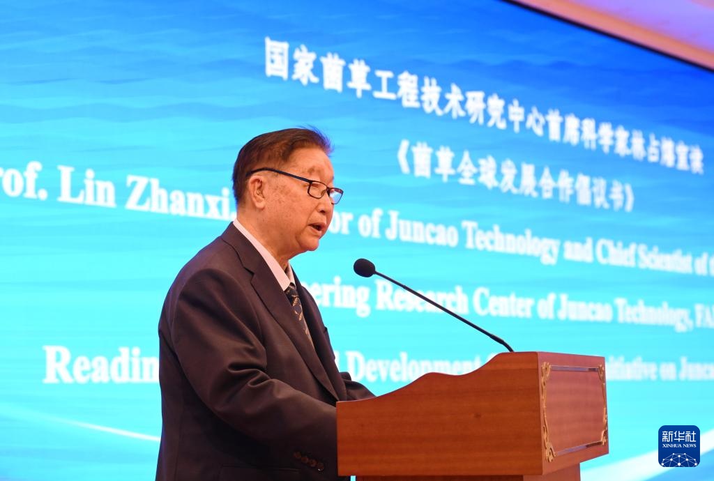 5月16日,国家菌草工程技术研究中心首席科学家林占熺在开幕式上宣读《菌草全球发展合作倡议书》。