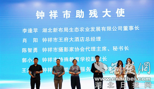 湖北新布局生态农业发展有限公司董事长李逢苹,市王府大酒店总经理肖阳,市摄影家协会代理主席、秘书长陈智勇,市特殊教育学校副校长郭小洁,市允能社工服务中心理事长王鸿举被聘为钟祥市“助残大使”,将进一步扩大助残事业的社会影响力,擦亮“钟心助行,莫愁有爱”的助残品牌。活动穿插了文艺演出及自强代表才艺展示,充分展现了残疾人乐观向上的精神风貌。