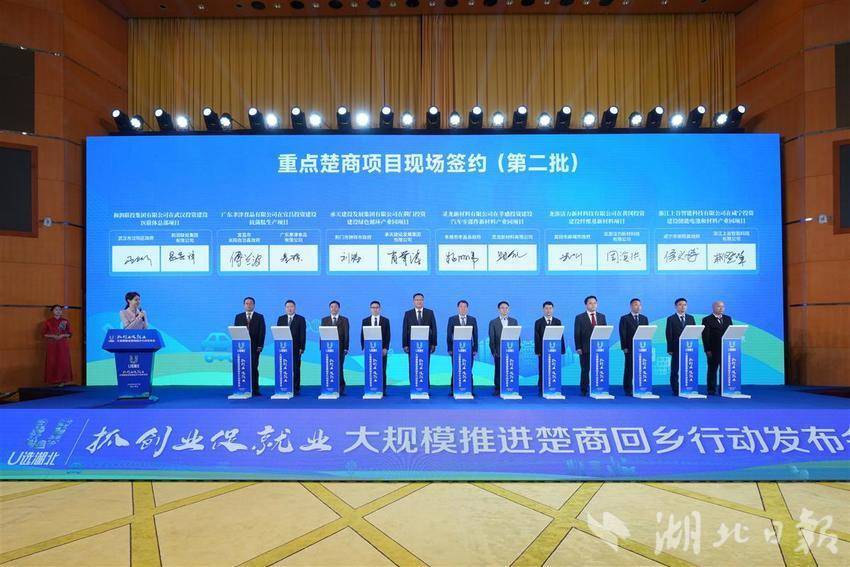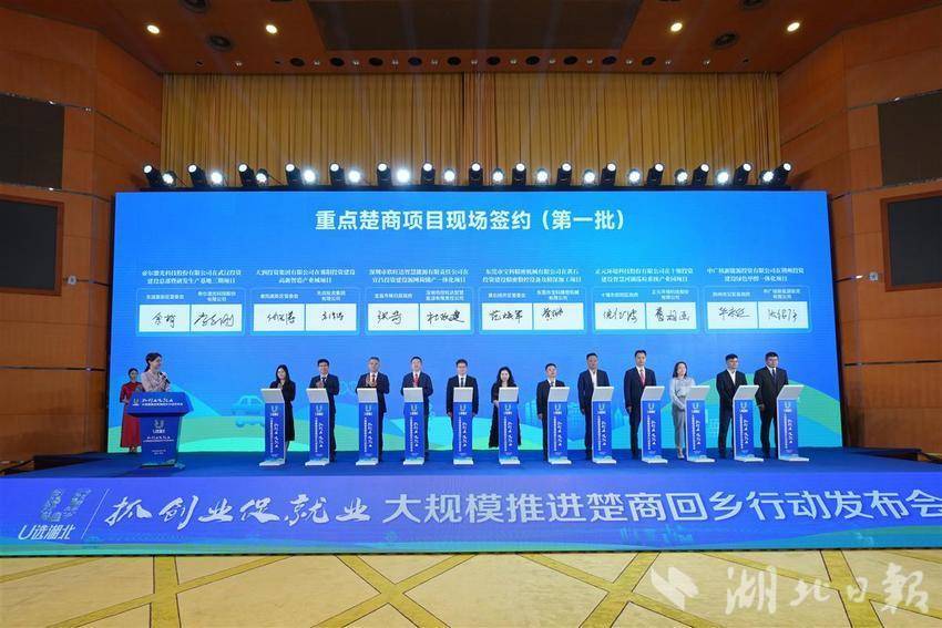 5月17日,湖北省“抓创业促就业”系列行动之大规模推进楚商回乡发布会在武汉举行。89个重点楚商项目签约,总签约金额达1163.54亿元。