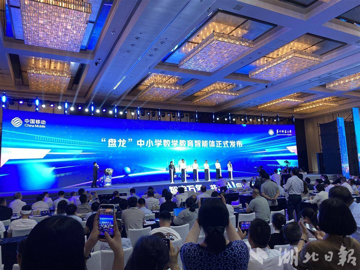 5月16日,在湖北移动AI成果发布暨生态大会上,华中师范大学发布了与湖北移动联合研发的“盘龙”中小学数学教育智能体。(记者 刘天纵 摄)