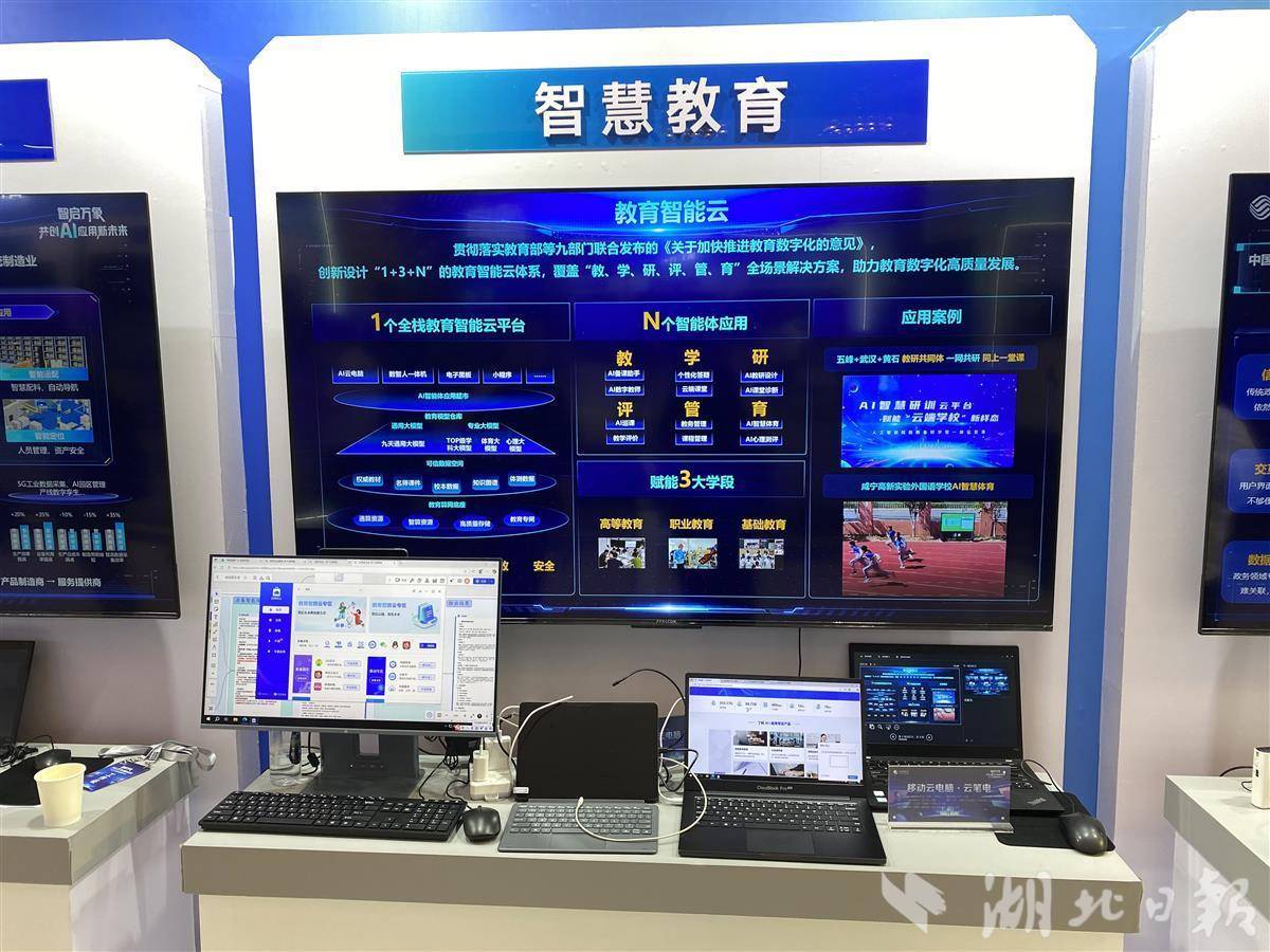 5月16日,湖北移动AI成果发布暨生态大会上展出的智慧教育产品。(记者 刘天纵 摄)