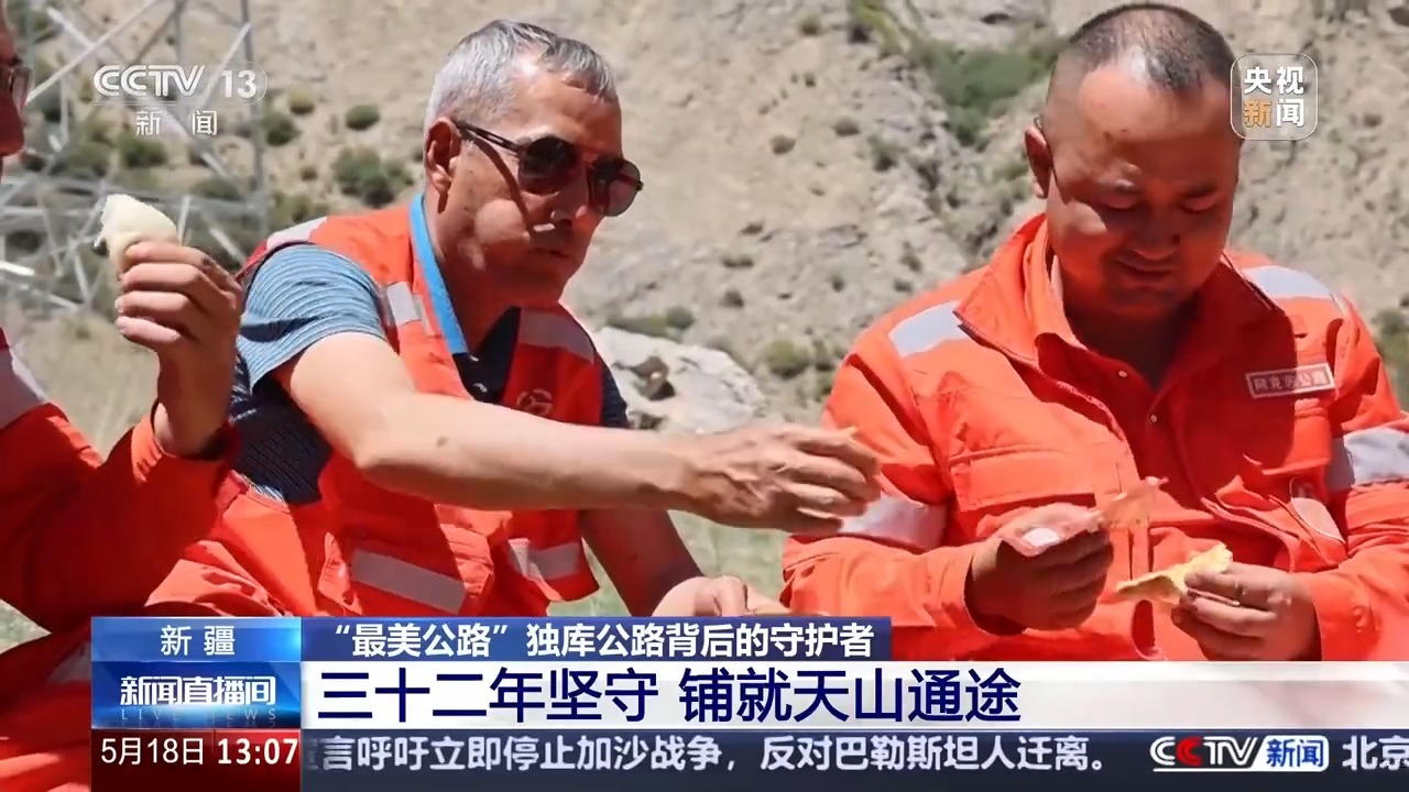 目前,在独库公路的南段,清雪工作已经告一段落。但是因为独库公路属于典型的山区公路,地质环境复杂,时常发生滑坡、泥石流、岩石崩落等危险,公路部门正在紧张地进行道路养护作业,其中一位养护工已经守护这条公路32年,他就是库车养护所的养护工亚克甫·克然木,18岁参加工作时就开始养护这条公路,三十多年过去了,他依然坚守在这条“最美公路”上,用实际行动铺就了天山通途。
