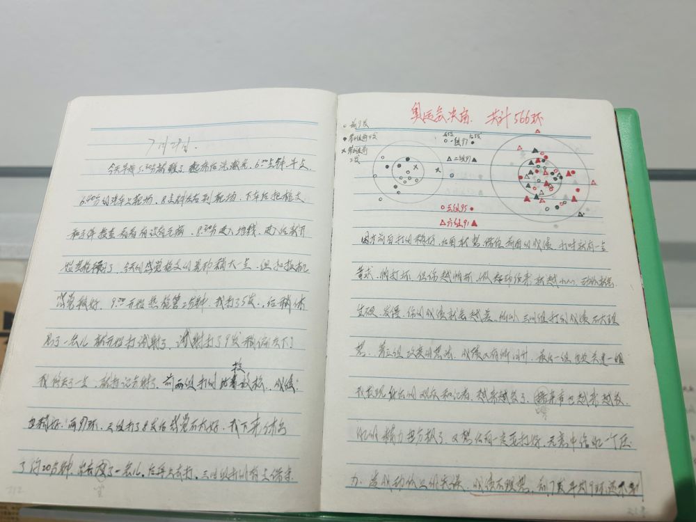 这天的日记里,不仅有许海峰比赛的心路历程,还有他手绘的每一枪位置的复原图,这是他在比赛时请人记录下来,自己赛后用不同颜色的笔迹、图案,誊抄标注在日记本上的。许海峰的坚持、细致,在日记中就得以体现。