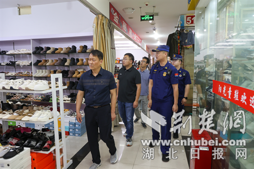 荆楚网 (湖北日报网)讯(通讯员 魏欢欢)为进一步消除辖区商市场消防安全隐患,维护安全经营秩序,5月16日下午,荆门市掇刀区消防救援大队联合区商务服务中心、掇刀石街道,对辖区义乌批发市场开展消防安全排查行动。
