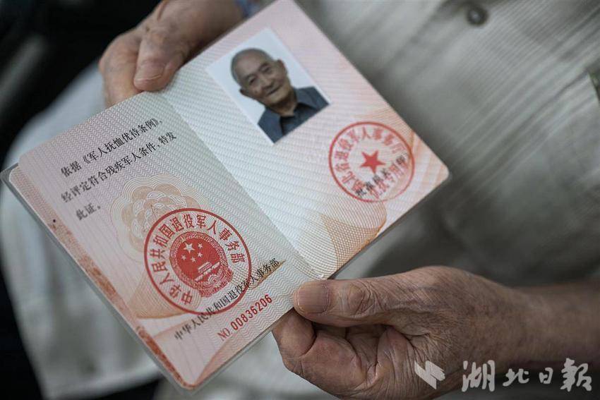5月19日,在华中科技大学校医院,武汉百岁抗战老兵宋绍瑛展示着自己的军人残疾证。