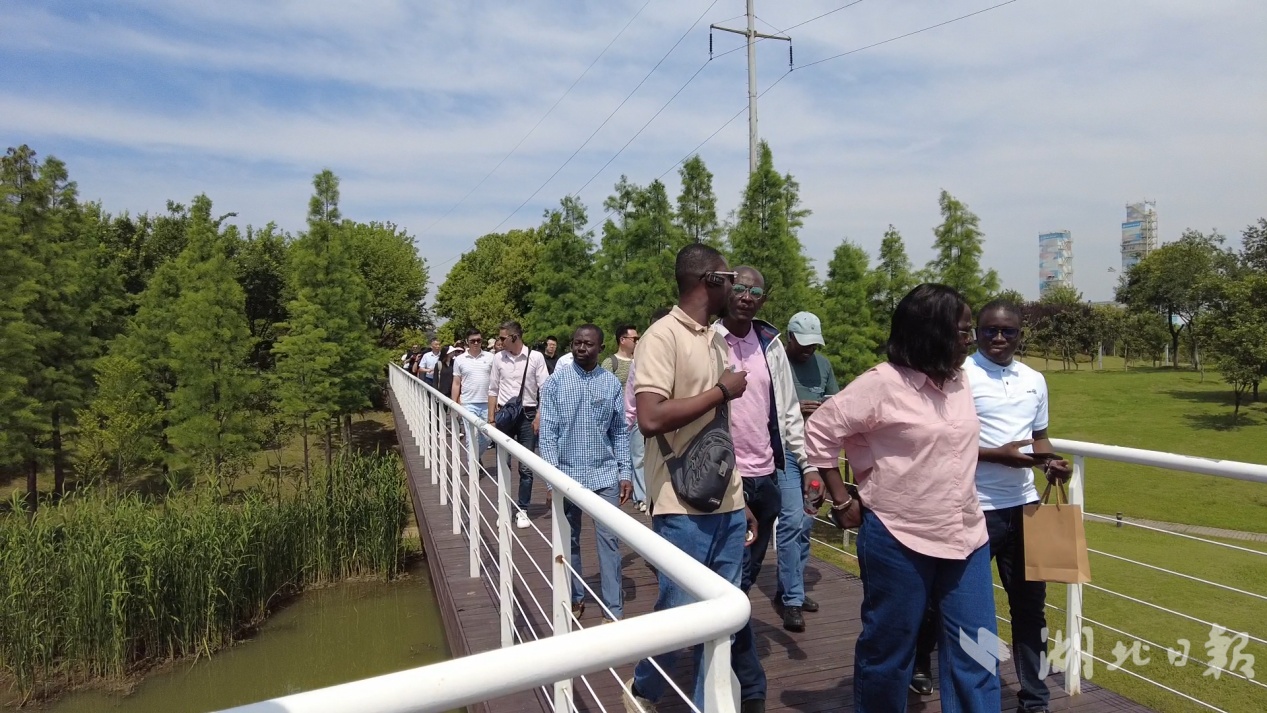 外媒记者参观花溪湿地公园。(湖北日报全媒记者 沈早慧/摄)