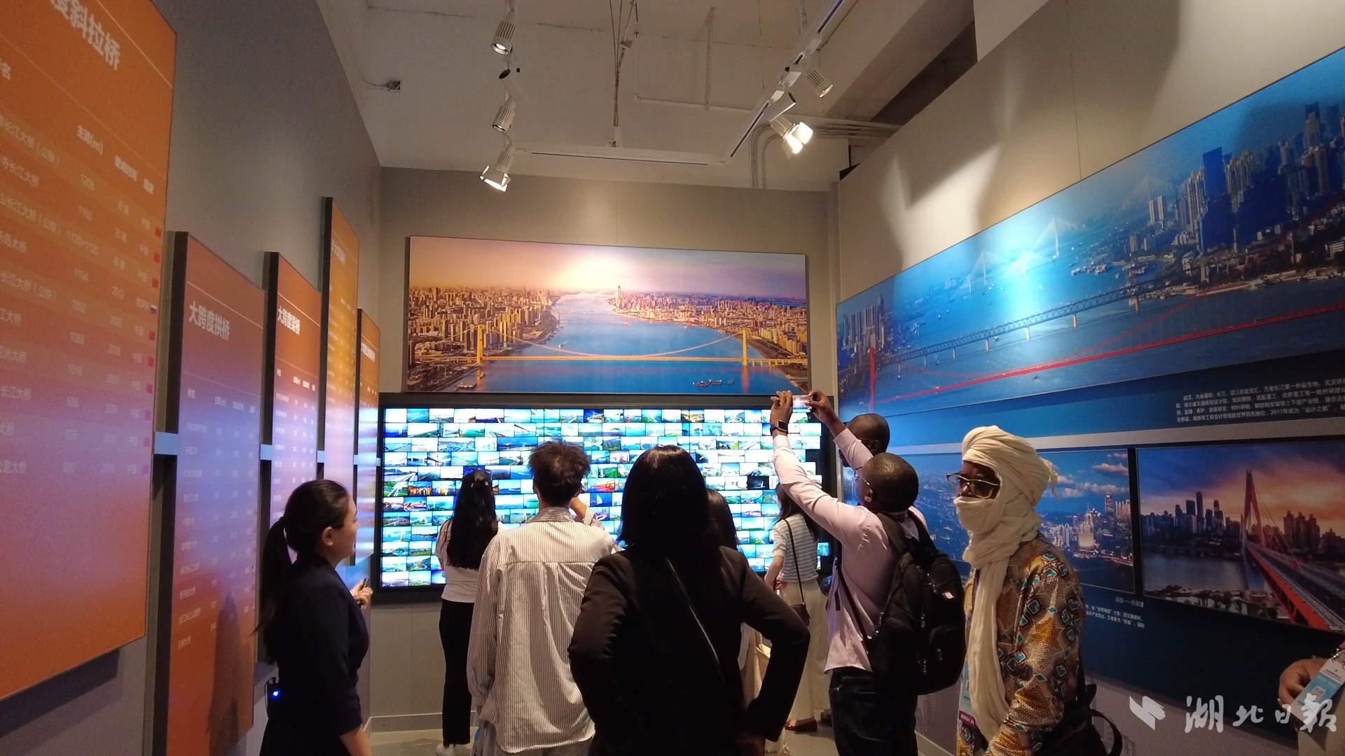 外媒记者了解武汉桥梁情况。(湖北日报全媒记者 沈早慧/摄)