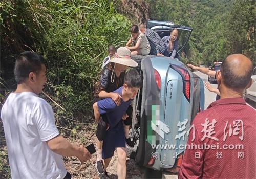 荆楚网(湖北日报网)讯(通讯员 李镇海)5月19日,在湖北十堰竹山县楼台乡028县道上,一幕暖心救援悄然上演。竹山县消防救援大队消防监督员田士伟、消防员熊坤外出开展防火检查途中,发现一辆蓝色新能源汽车侧翻路边。